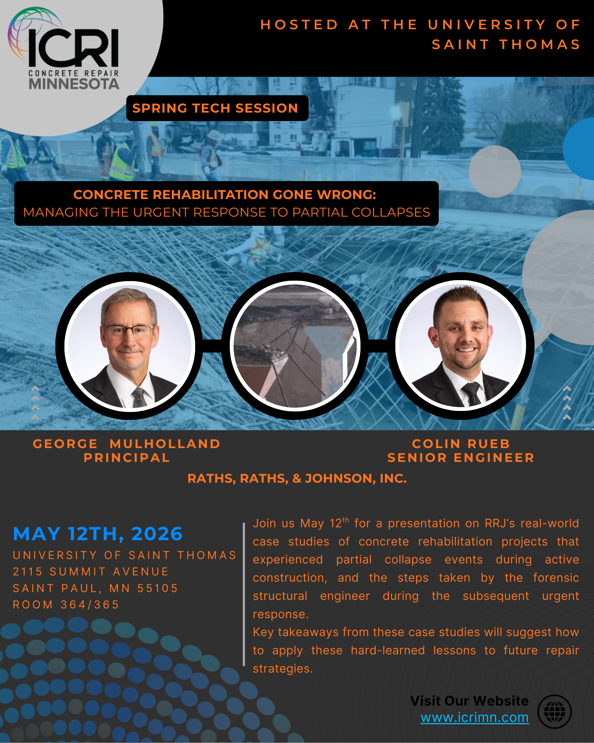 ICRI 2026 Spring Technical Session “Concrete Rehabilitation Gone Wrong: Managing the Urgent Response to Partial Collapses” Presenters: George Mulholland – Principal – Raths, Raths & Johnson, Inc. https://rrj.com/wp-content/uploads/2021/03/GRMresume.pdf __________________________________________________________ Colin Rueb – Senior Engineer – Raths, Raths & Johnson, Inc. https://rrj.com/wp-content/uploads/2021/03/CPRresume.pdf The presentation […]